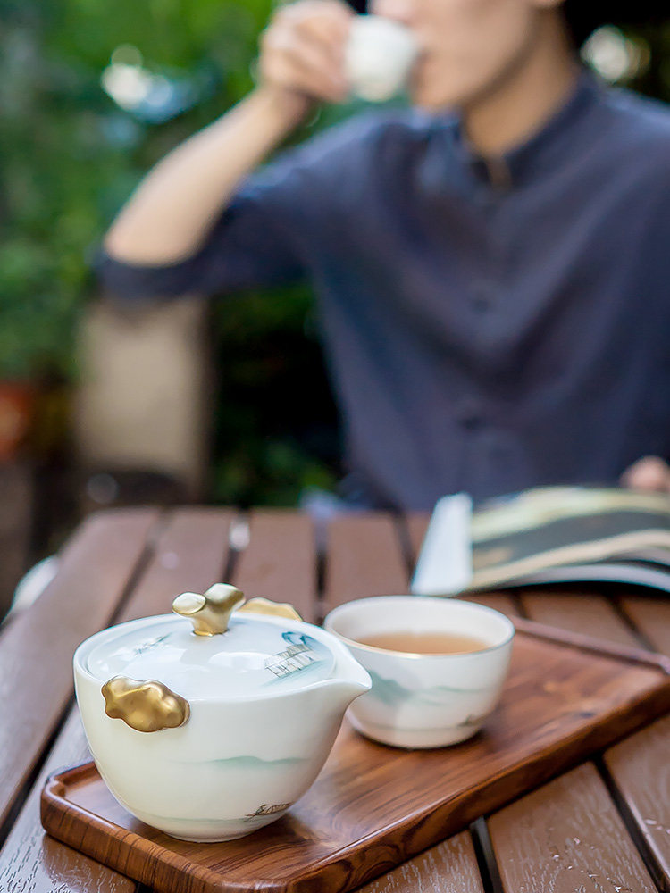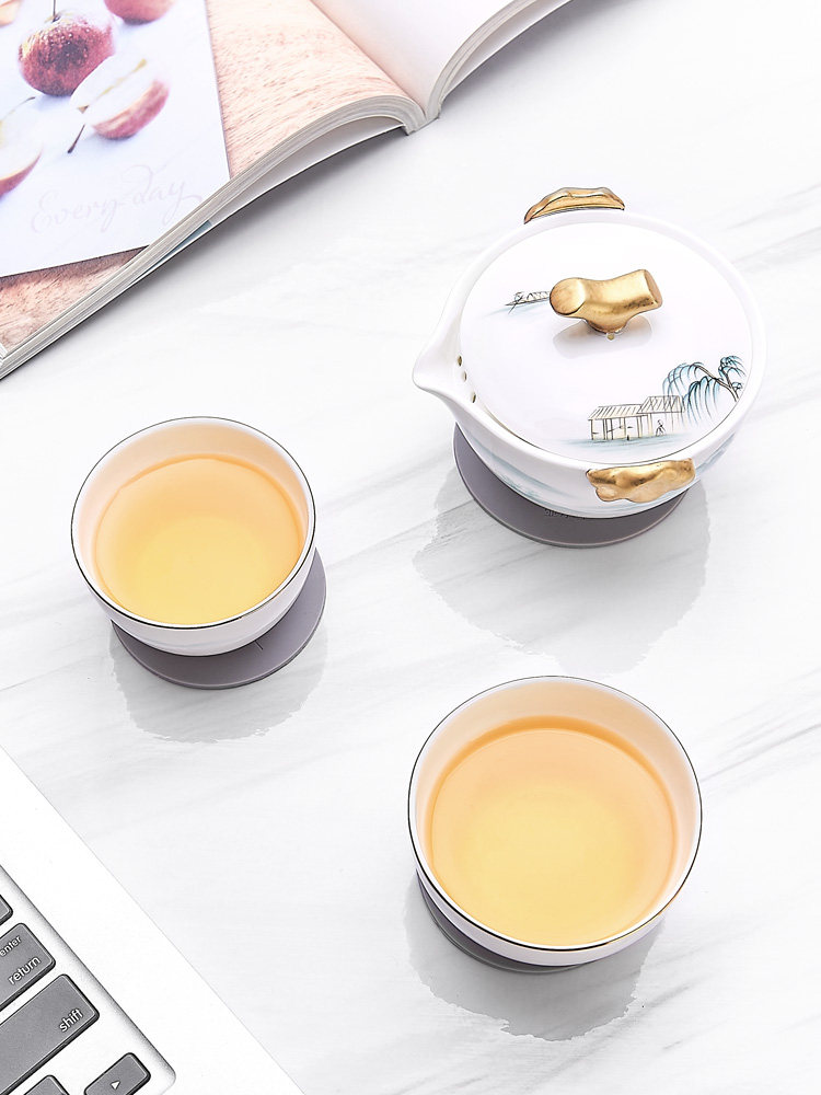 Margolonte West Lake Feast One Pot Two Cups Portable Travel Tea Set Bone China Kung Fu Tea Set Home