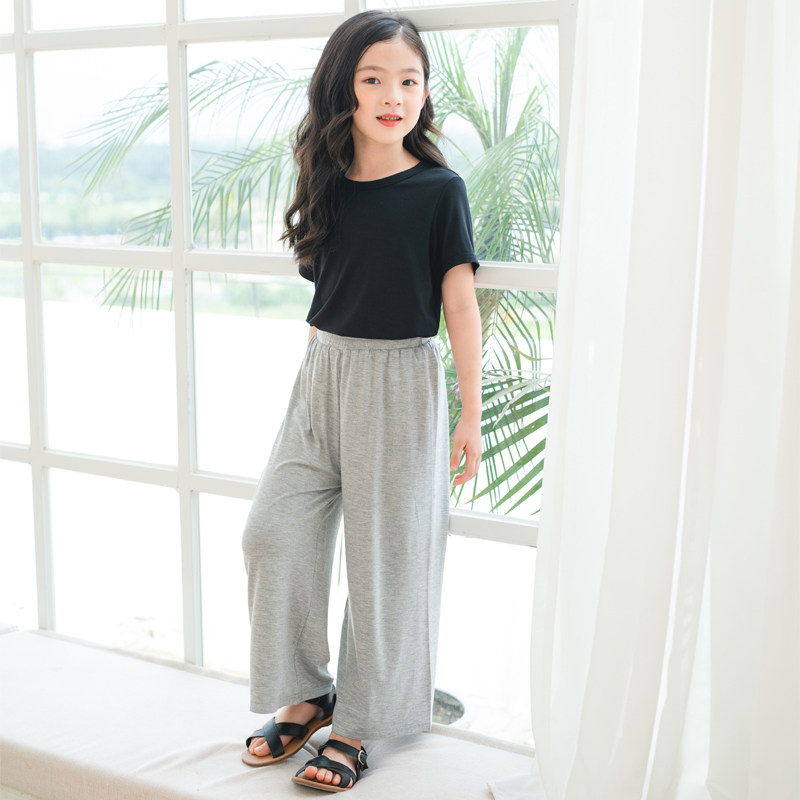 Girl Modell Broadlegged Pants Summer Thin big child casual black long pants Children's pituitary mosquito-proof pants