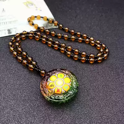 Body protection Six-character truth pendant Three-color glass necklace Solid door rotating carved pendant Fate Shurangama mantra Buddha Statue