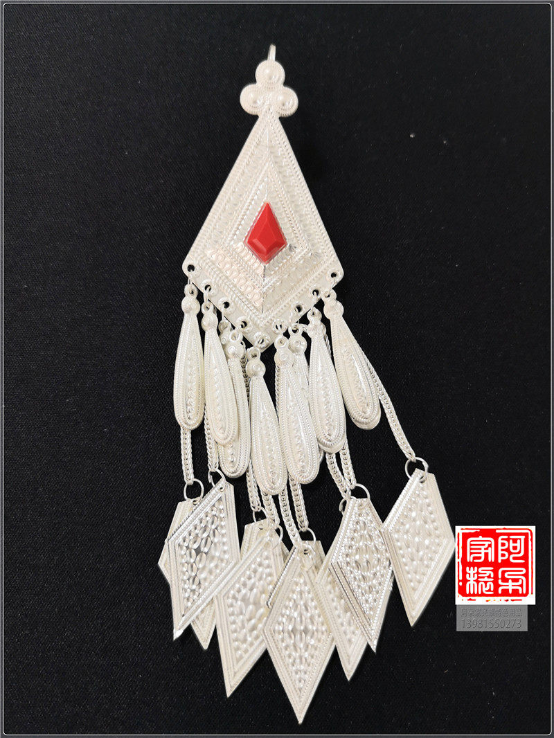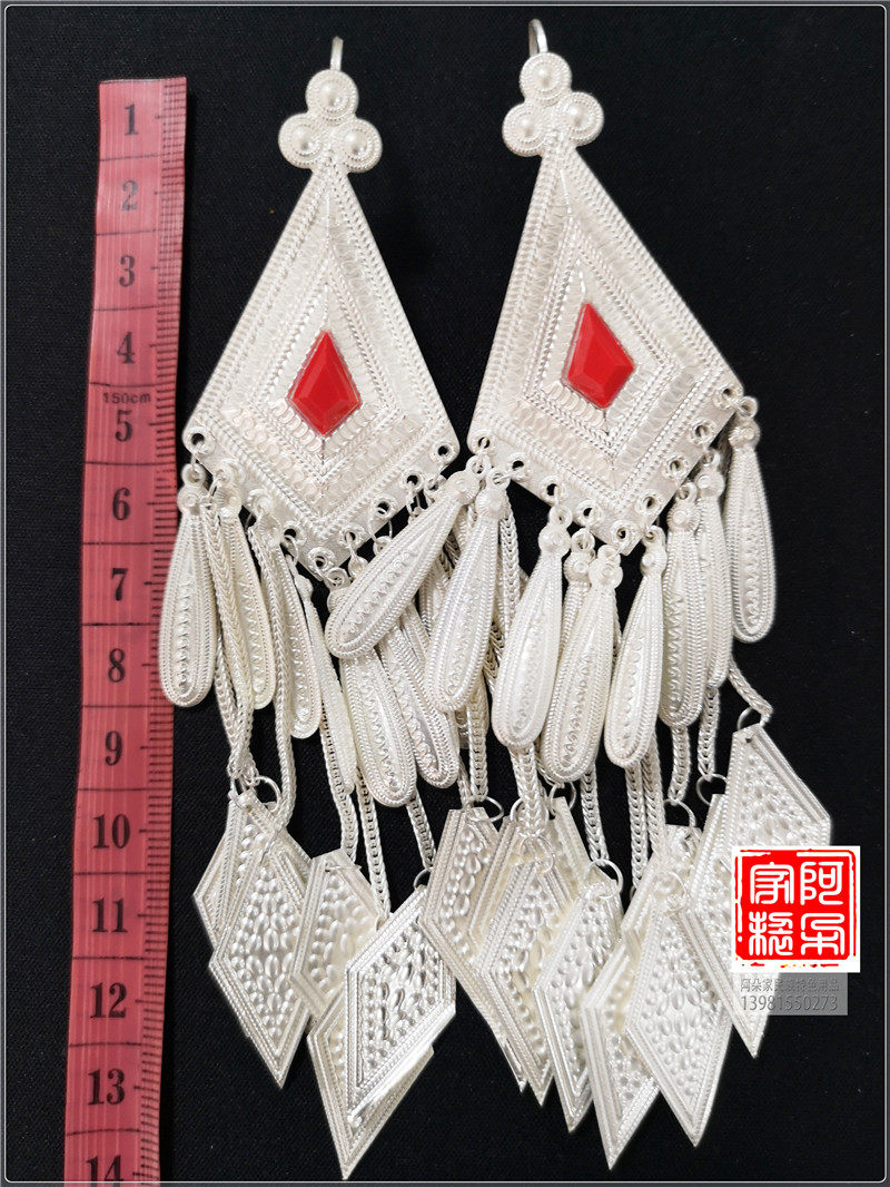 Liangshan Yi sterling silver earrings diamond-shaped ethnic style traditional handicraft sterling silver handmade earrings women's jewelry