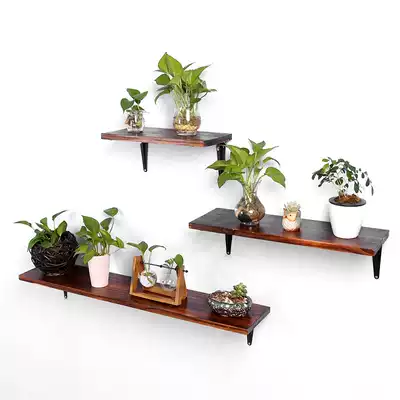 One-character partition solid wood wall shelf creative fashion wall partition bookshelf iron living room decorative flower rack