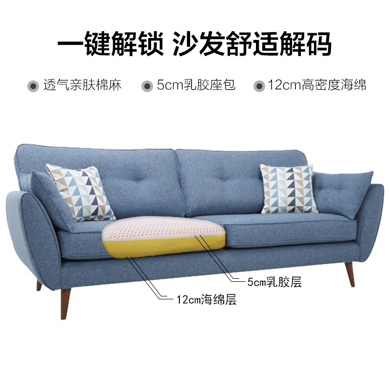Designer Nordic European-style model room three-person fabric sofa Modern minimalist small apartment combination of single and double