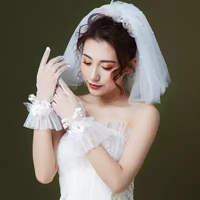 Bridal gloves wedding gift lace super fairy flowers white female thin spring and summer photo Korean wedding gloves short