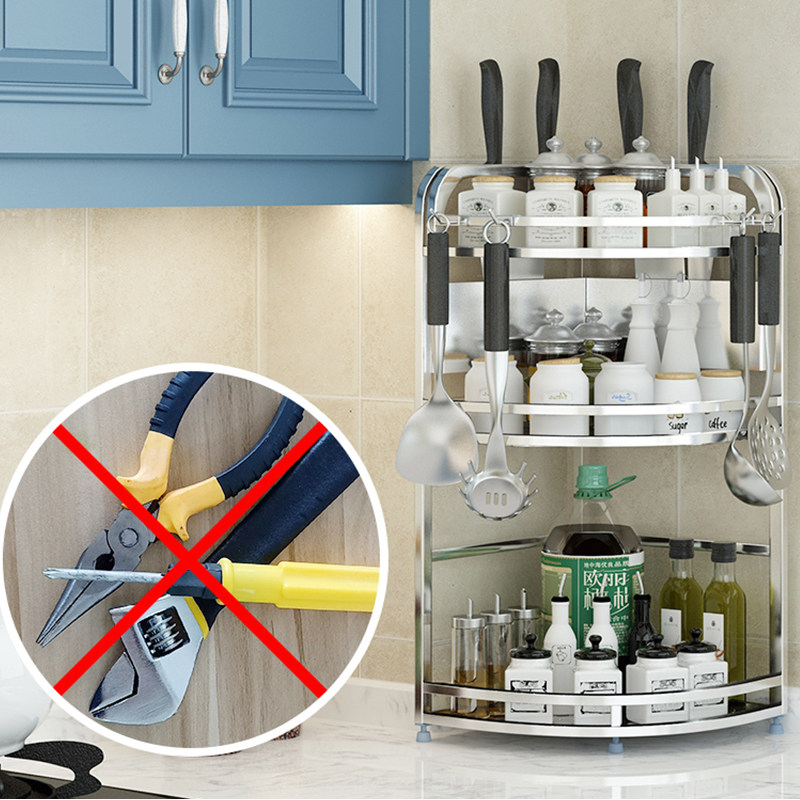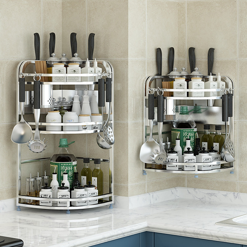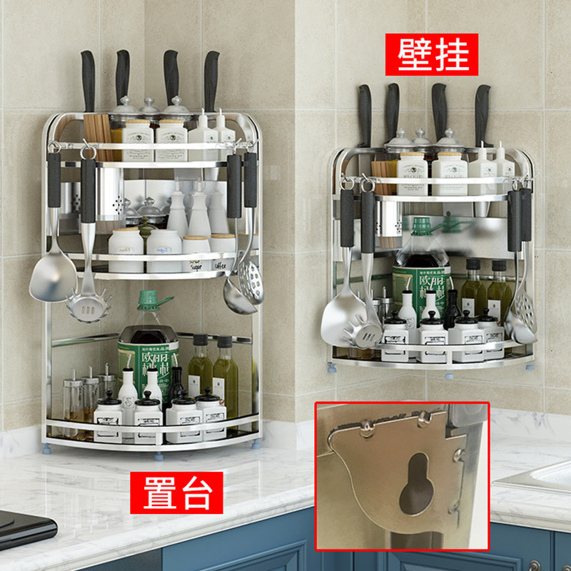 Kitchen shelf 304 stainless steel tripod Wall storage seasoning seasoning corner storage shelf Kitchen utensils