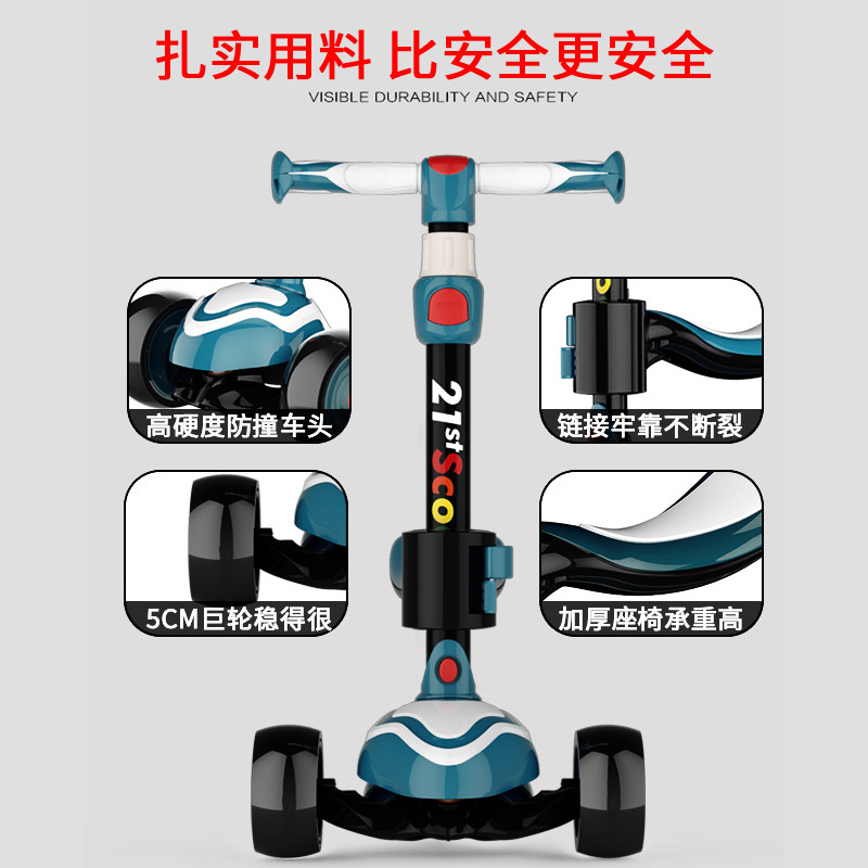21stscooter new two-color belt shock-absorbing children's scooter 1-3 years old baby 2-6 years old child flashing wheel