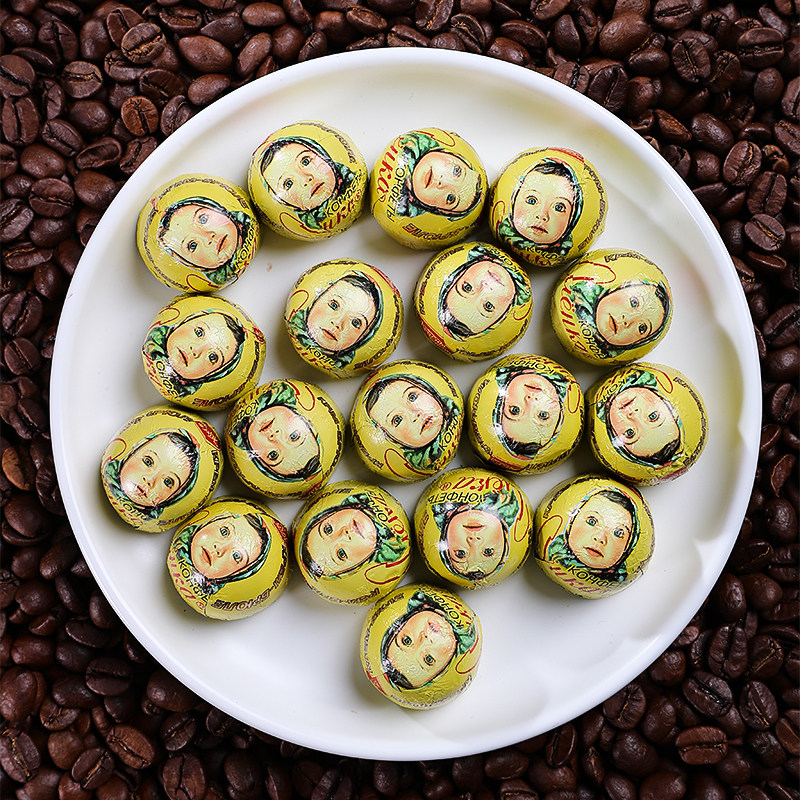 Russian imported doll ball semi-round chocolate condensed milk caramel milk sandwich semi-round ball bag net red snacks