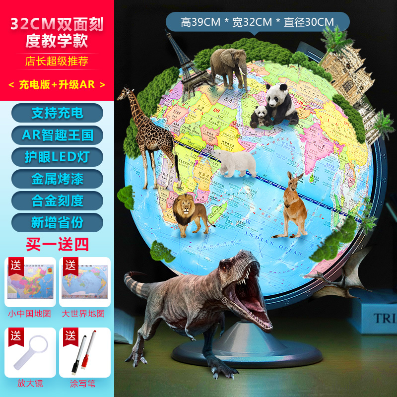 (Recommended by the teacher)Wisdom elephant 25CM high-definition trumpet with light teaching version Junior high school students 20 primary school students children AR globe decoration study decoration 10 6 rewritable word-free creative gifts