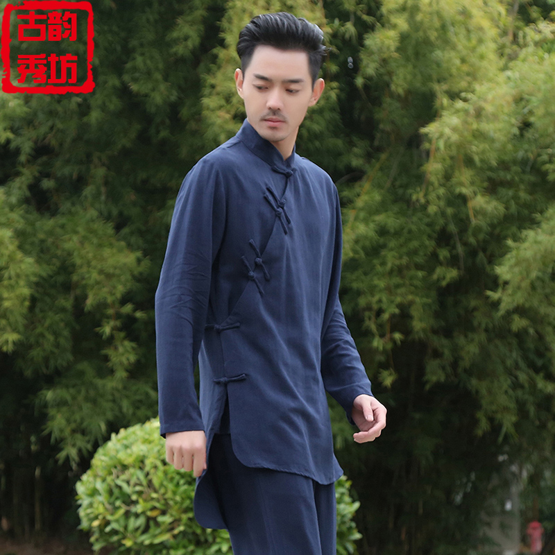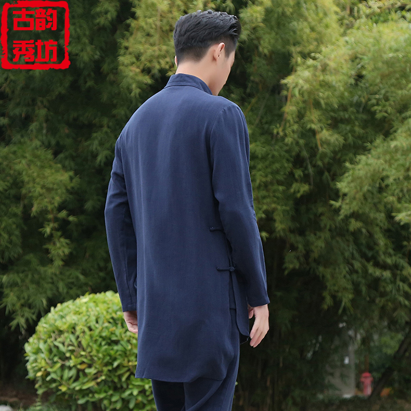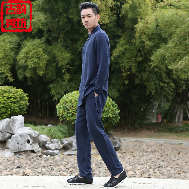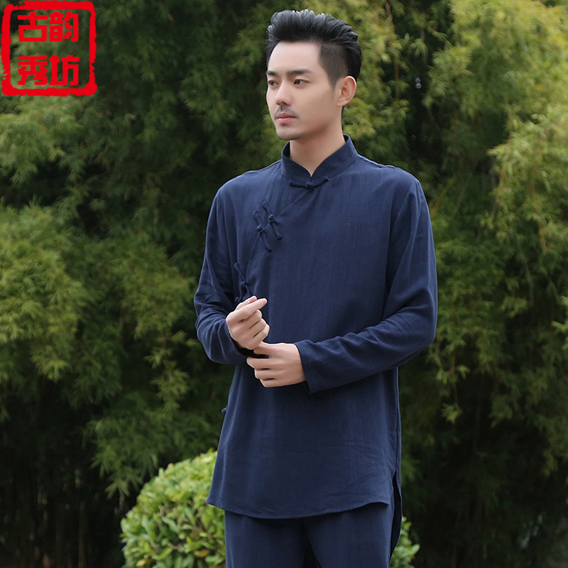 China Wind Men's Handwear cotton jumpsuit Short sleeves Chinese cableway jacket Republic of China Tea Museum Working clothes Ancient Clothing Dish buckle Down
