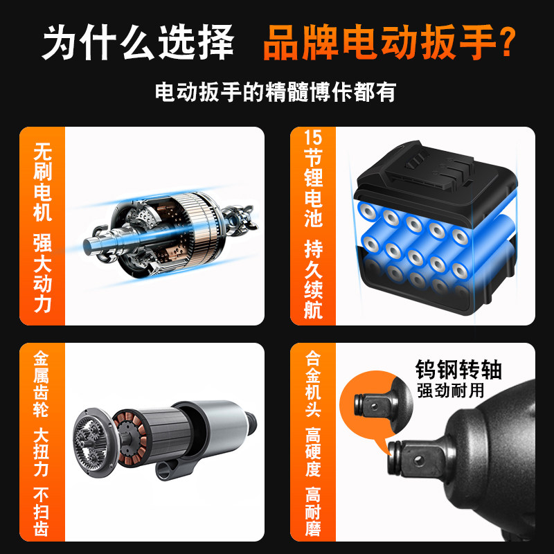 Rechargeable mobile phone battery flashlight electric wrench Lithium impact brushless wrench shelf manual pneumatic wrench strong auto repair large torque