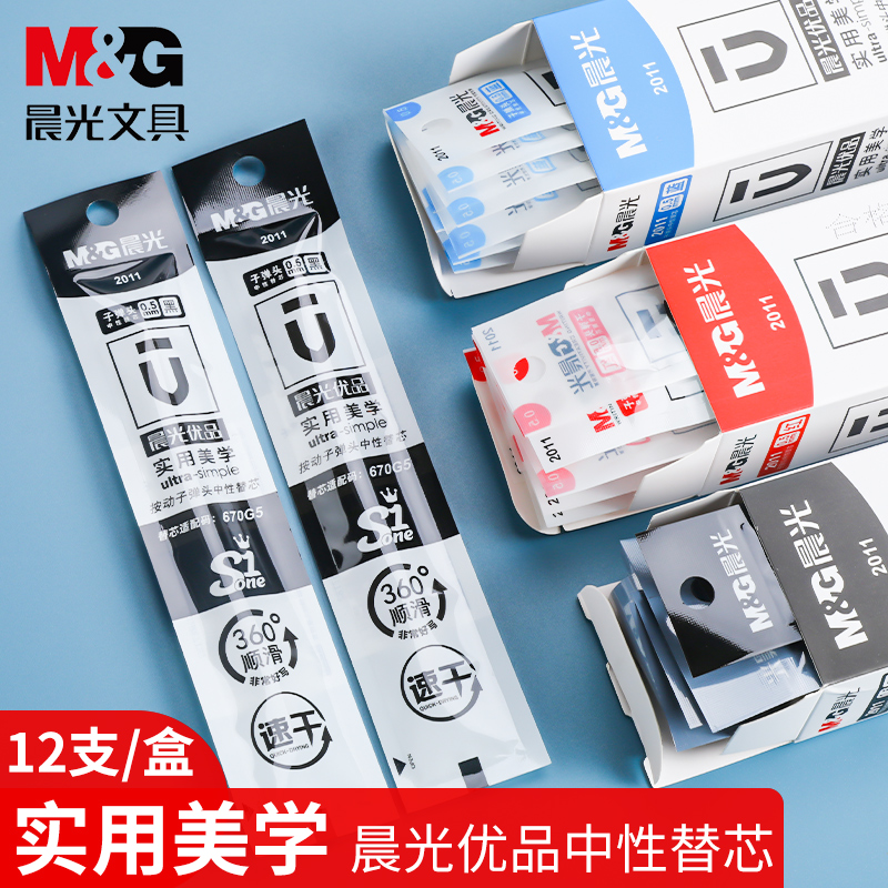 Morning light Uber according to action Pen Refill Black Pen Refill Elementary School Students With Exam Subwarhead 2011 Speed Dry Refill 0 5 Replacement Core Black Blue Red Large Capacity Press-type refill