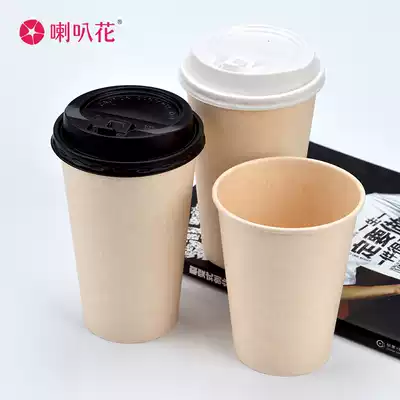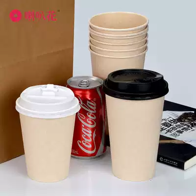 Trumpet flower White Paper Cup disposable bagasse single double layer hollow cup coffee cup hot drink cup with lid 50 sets