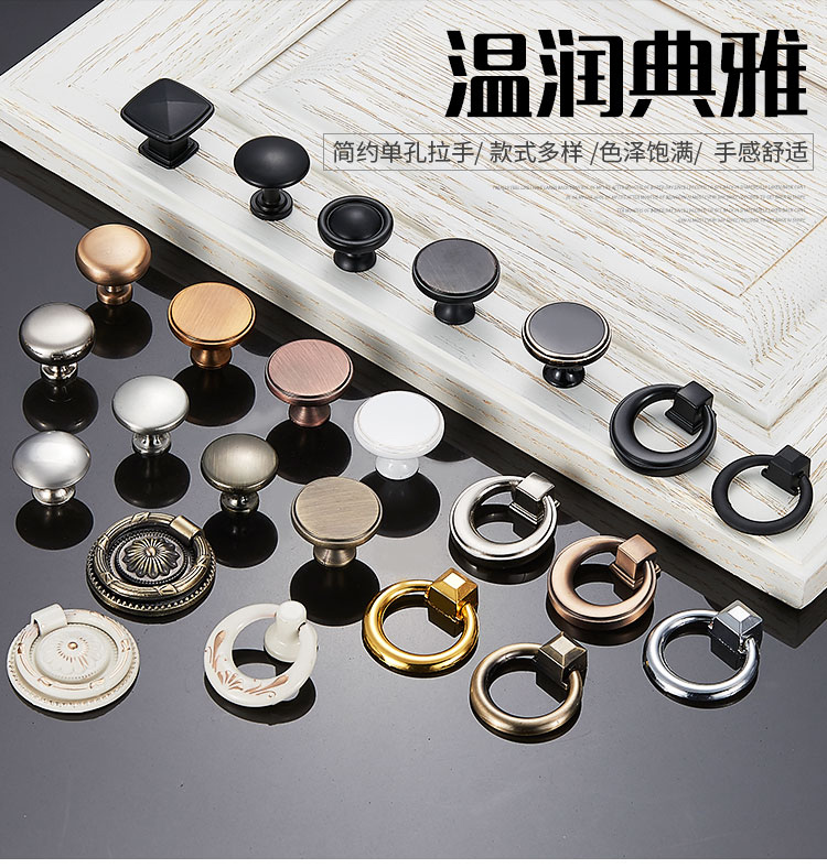 Modern simple single hole handle black hole cupboard drawer closet door small hands solid round single hole pull handle
