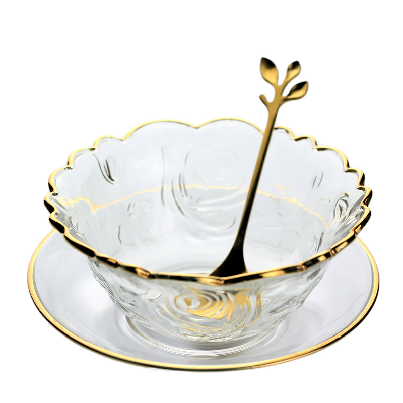 Gift shipping risk return without worry 250 ml transparent bowl gold leaf spoon 250 ml Phnom Penh bowl gold leaf spoon 250 ml Phnom Penh bowl Phnom Penh round disc leaf spoon 250 ml