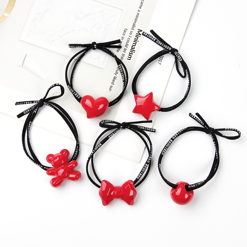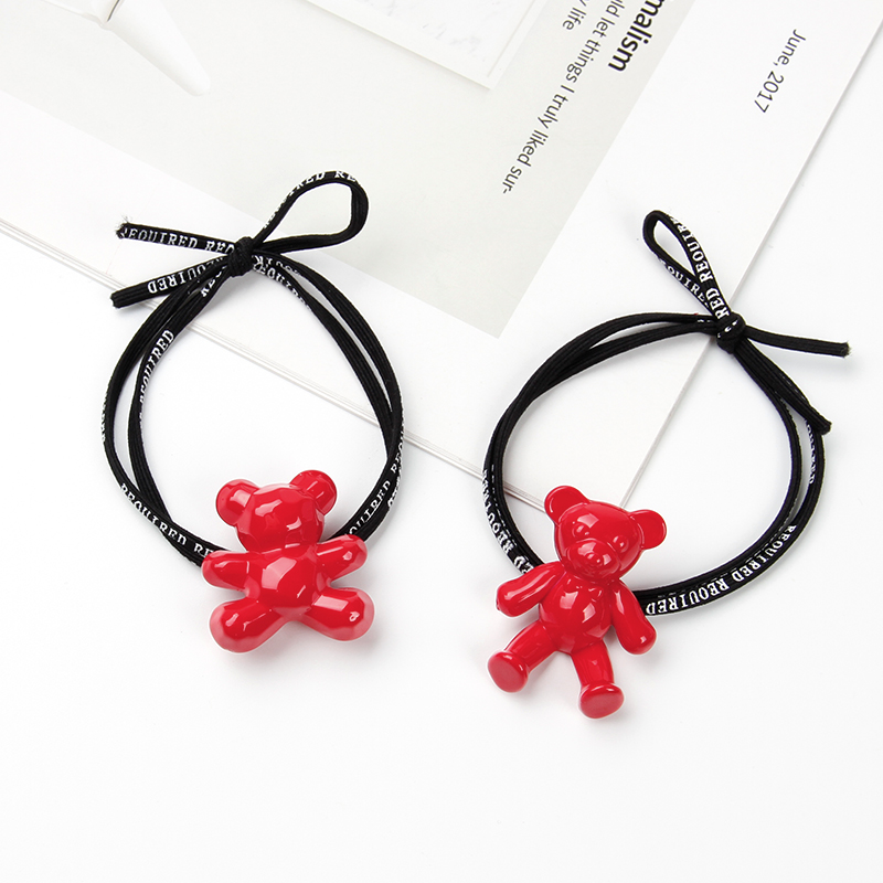 Korean net red simple ins female tied hair Cute bear love bow tie head ponytail rubber band hair rope headdress