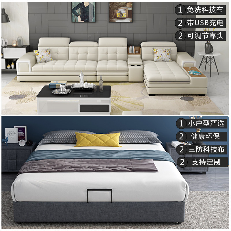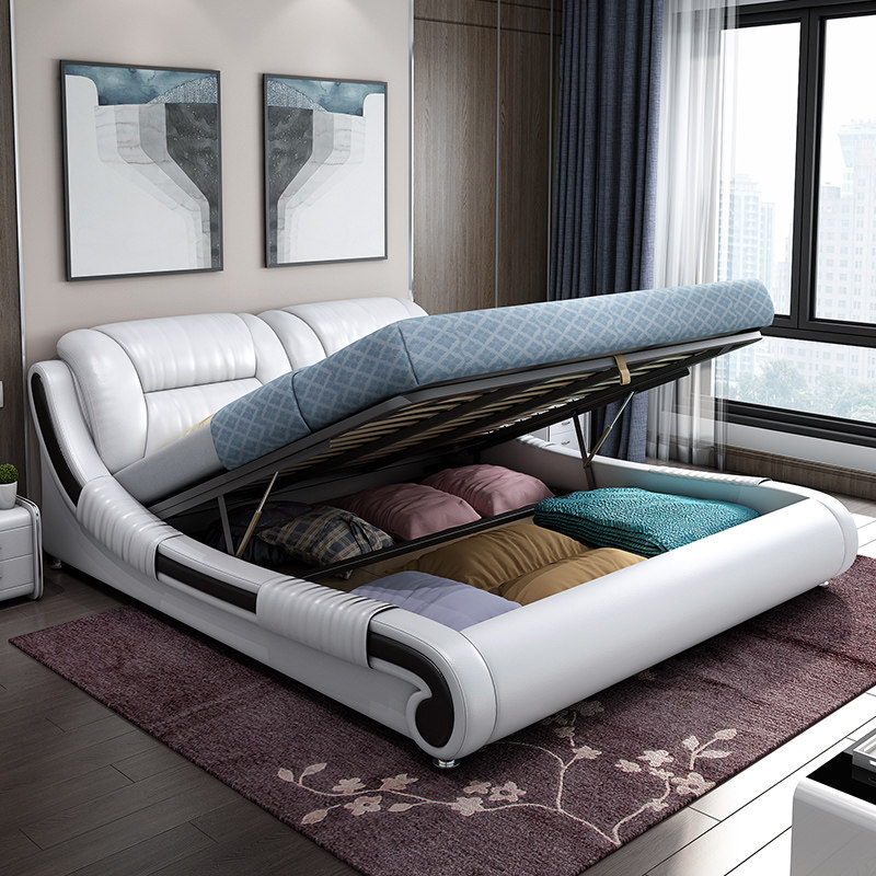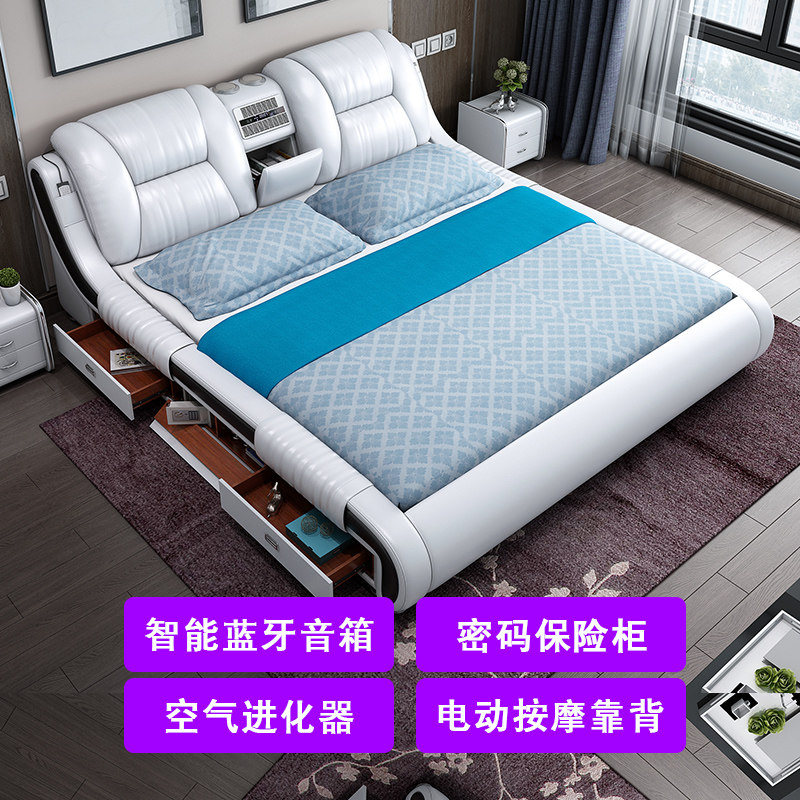 Double storage leather bed small apartment master bedroom 1 8 meters modern multi-functional simple new intelligent leather art wedding bed