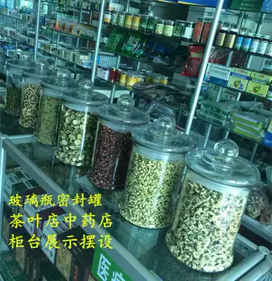 Glass jar Thickened glass sealed jar Chinese herbal medicine jar Storage jar Large dried fruit tea storage jar with lid Glass bottle