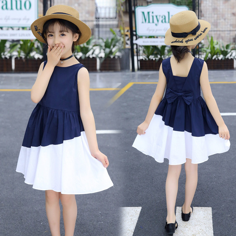 Girls princess dress summer fashion Western style cotton 2022 new trendy net red bow halter middle big child
