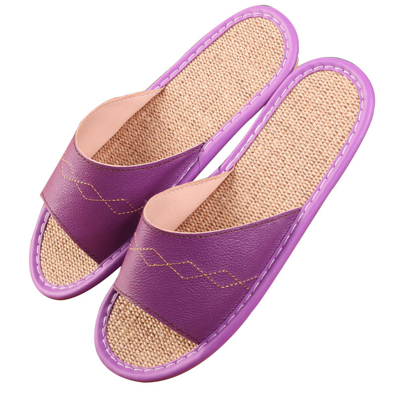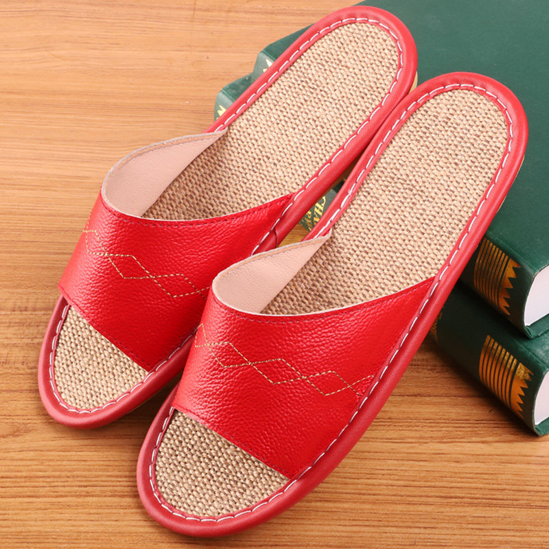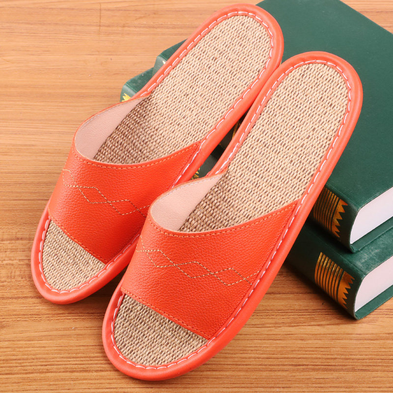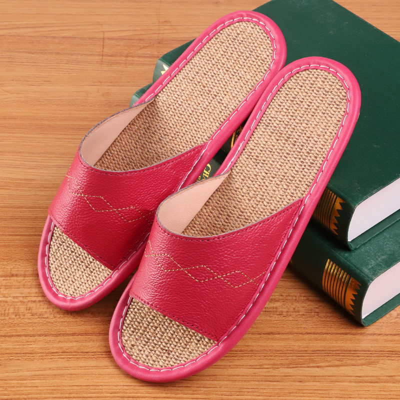 Haining sewing edge leather slippers Waterproof non-slip wear-resistant cattle tendon bottom linen indoor cool breathable slippers