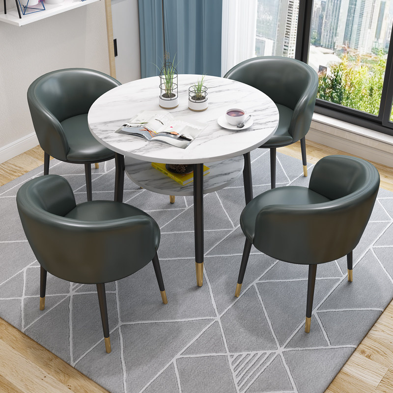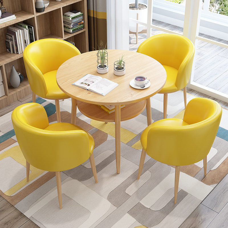 Nordic minimalist reception table and chair combination negotiation table leisure milk tea shop cafe dining table and chairs double-layer small round table