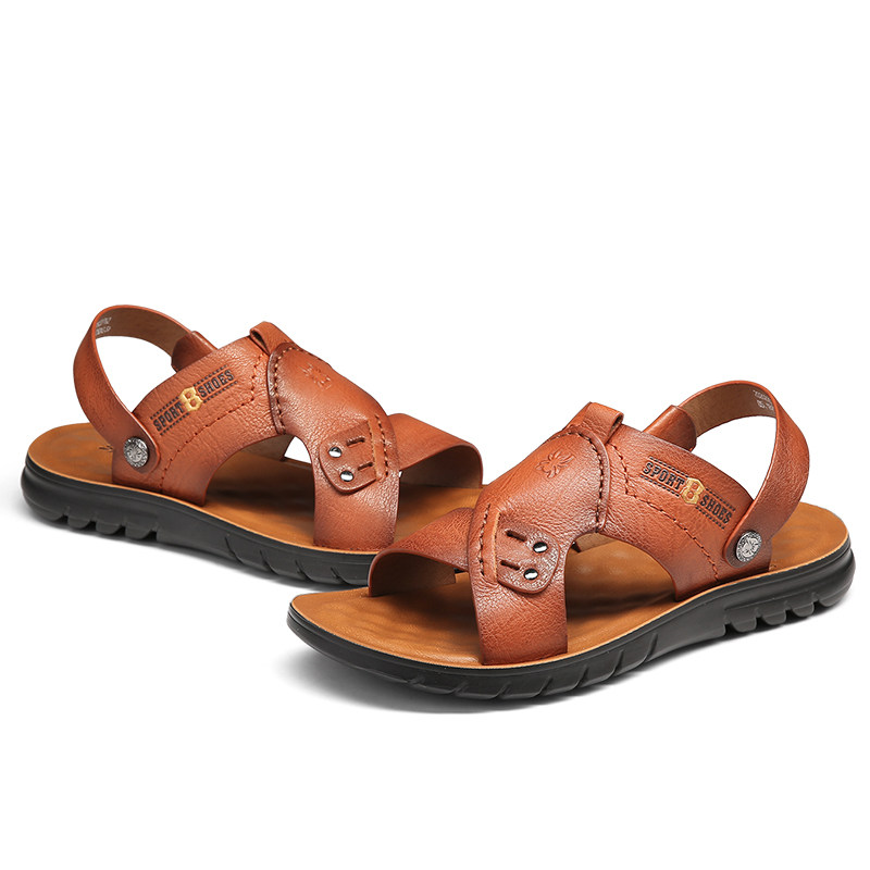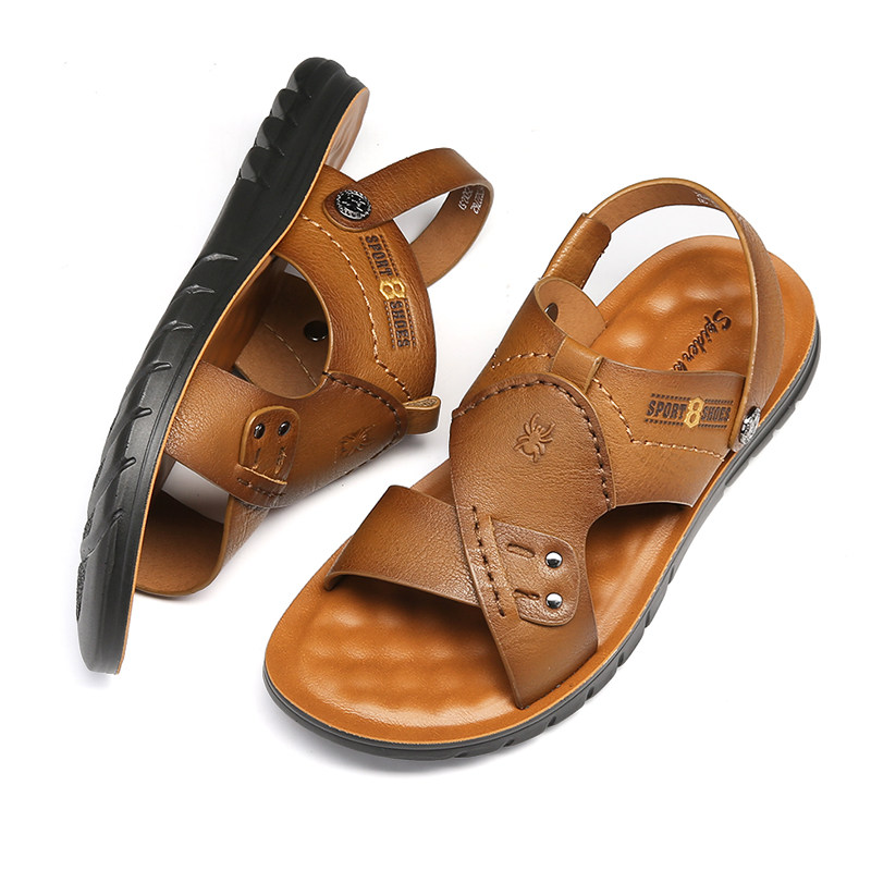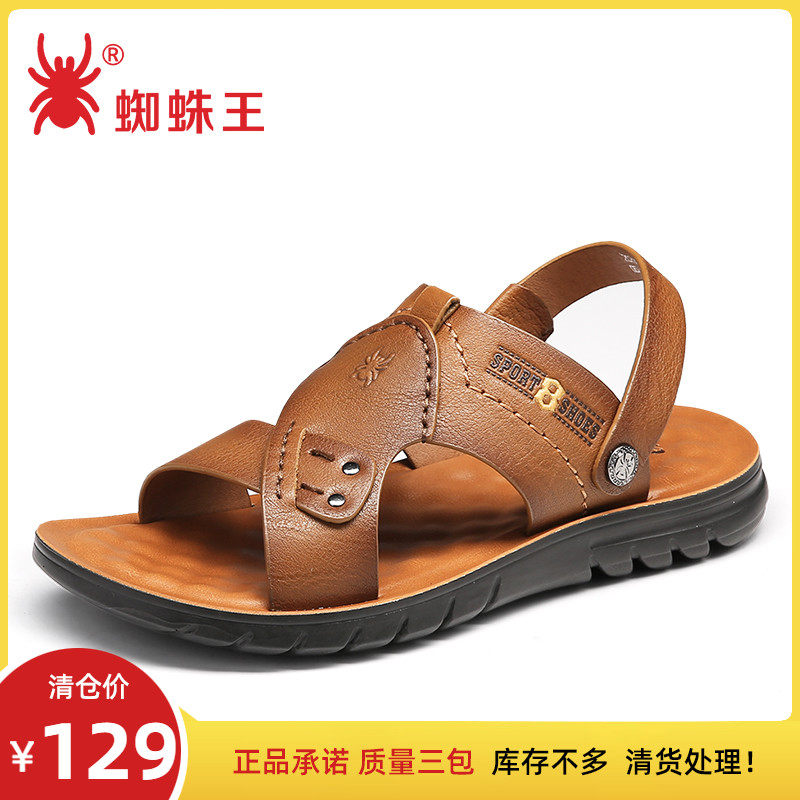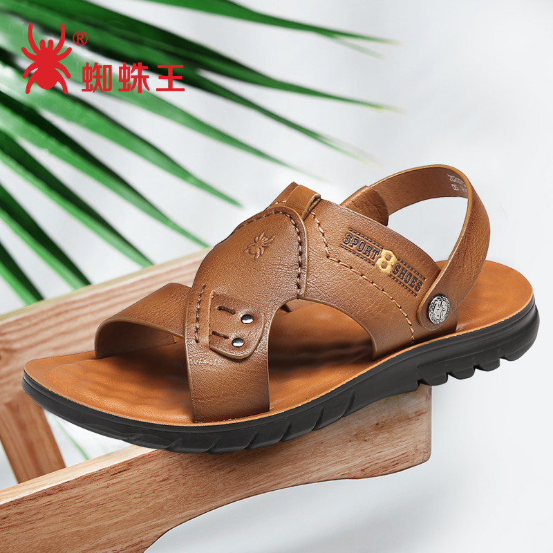 Spider King Sandas men summer new cow leather toe beach shoes with beach leather leather and breathable male slippers