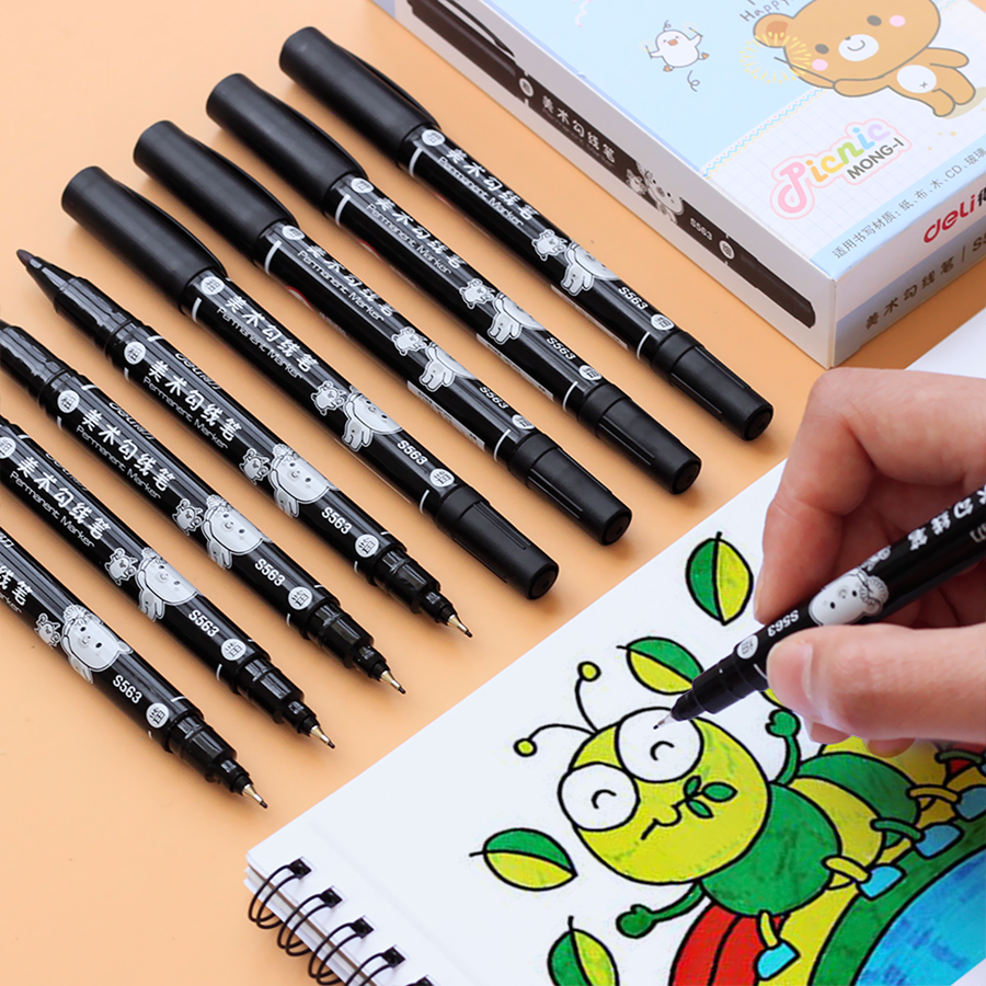 Deli Hook Line Pen Students use art kindergarten children to draw black double head stroke marker pen thickness drawing special hand-drawn color oily thick head hook stroke stroke line mark professional