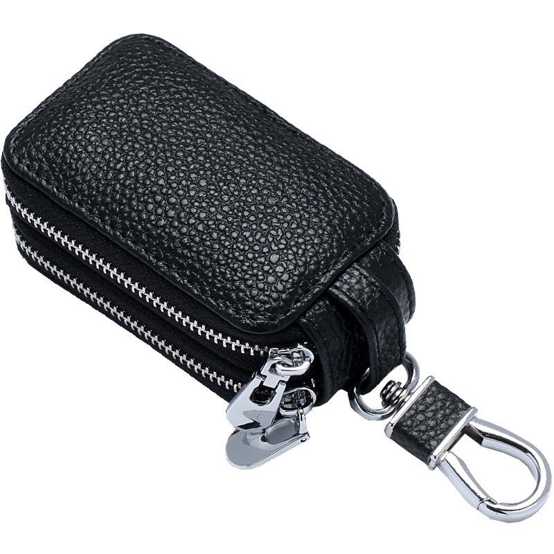 Double layer pull-chain key bag genuine leather female multifunction storage Large-capacity home car versatile small key-key cow leather