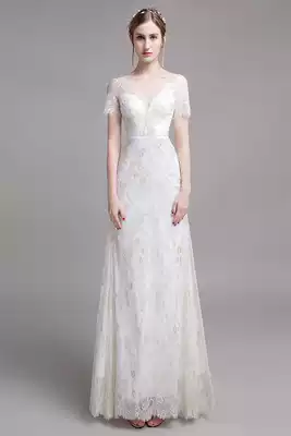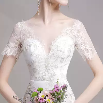 Wedding dress 2021 new lace short-sleeved fishtail bride forest light wedding dress simple light wedding dress gauze dress female