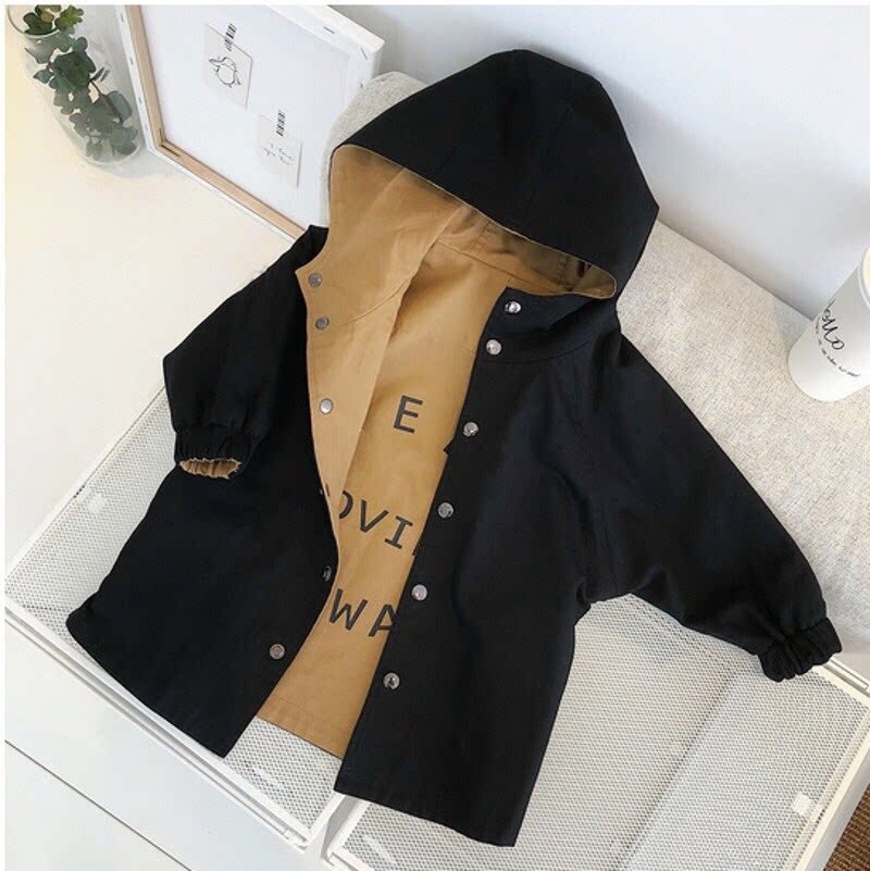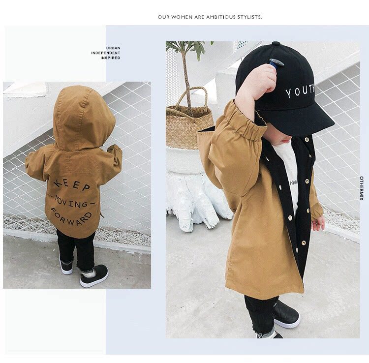 Boy Spring and Autumn 2022 in both sides wearing coat middle - long - plate windshirt temperament and cap coat