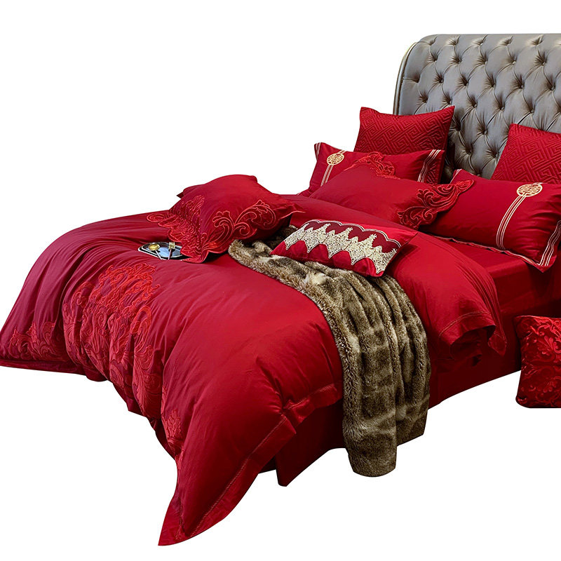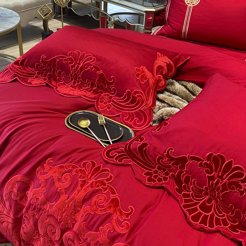 Wedding Four Pieces Of Wedding Bed Accessories Big Red Embroidered Wedding Wedding Celebration New Wedding All-cotton Pure Cotton 67 Pieces 1 8m