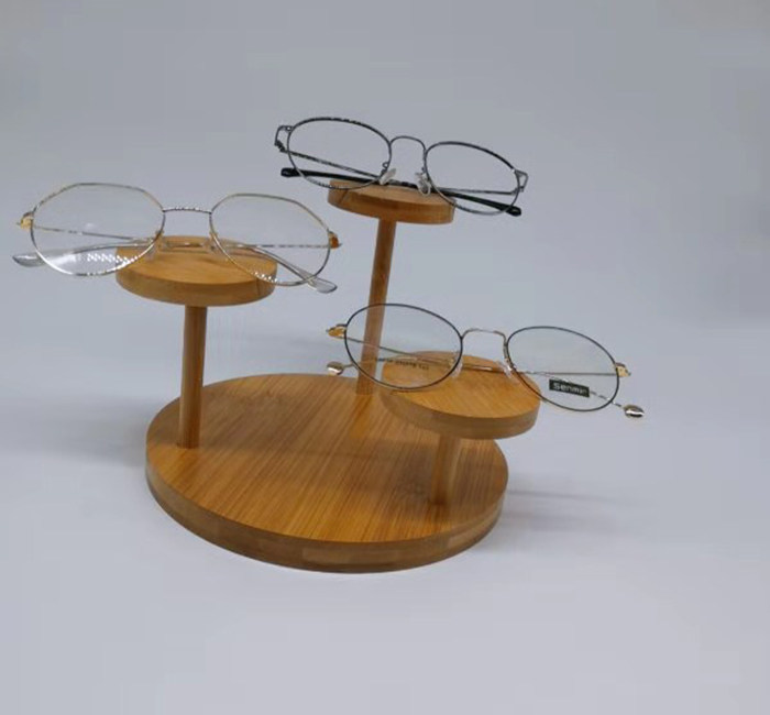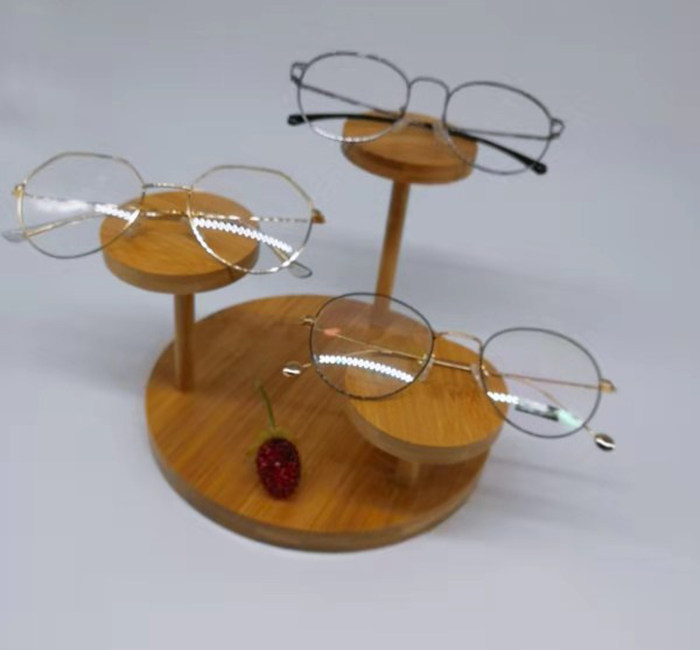 Trendy high-end bamboo and wood glasses display shelf wood close-lens display sunglasses holder containing shelf spectacle frame