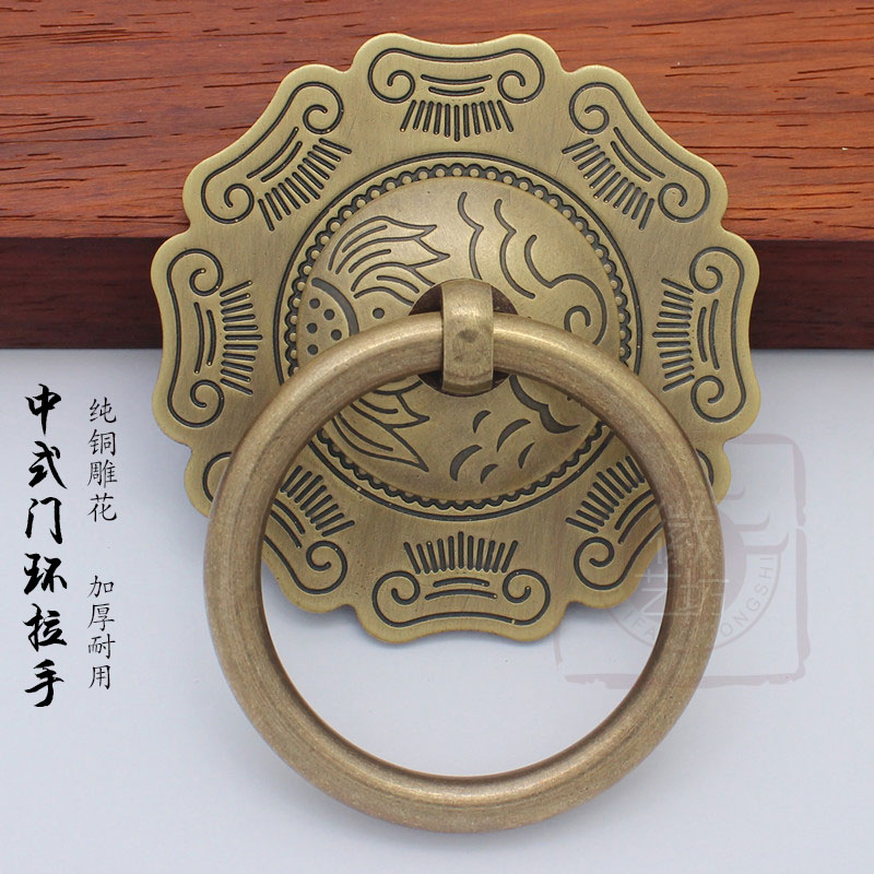 Chinese imitation antique pure copper cabinet door handle courtyard retro wood door thickened ancient bronze pull ring Chinese furniture 5 gold accessories