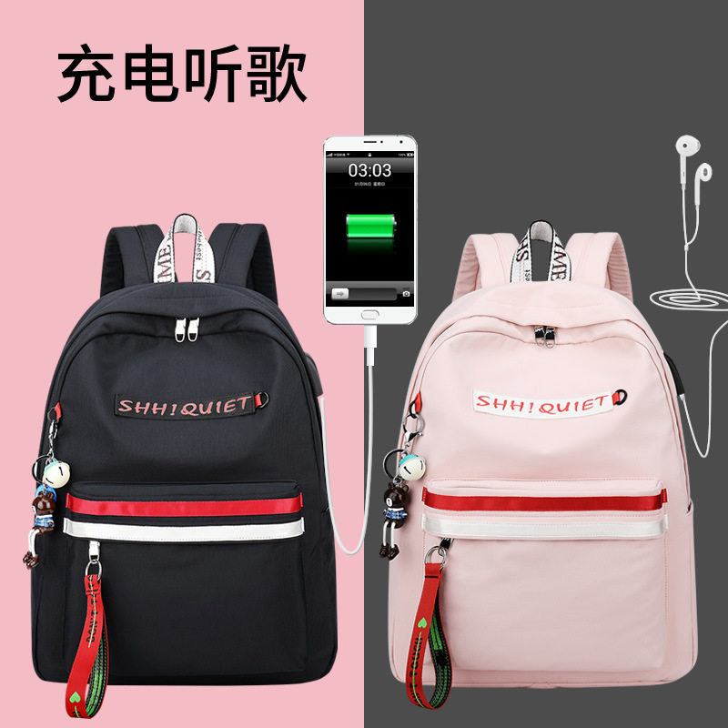Schoolbag female Korean version of Senior high school large capacity simple canvas campus backpack female junior high school student Oxford cloth waterproof backpack