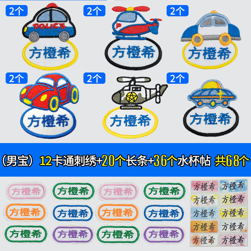 (Male treasure) cartoon embroidery 12 long embroidery 20 water cup stickers 36