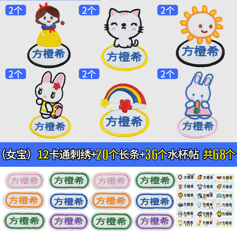 (Female treasure) cartoon embroidery 12 long embroidery 20 water cup stickers 36