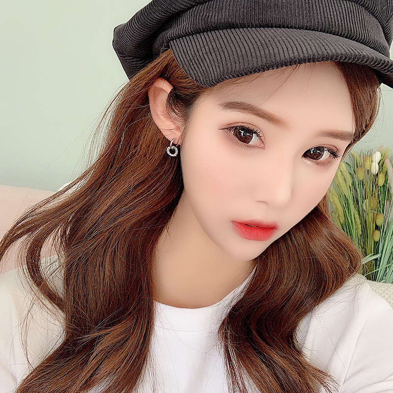 Creative Double Ear Button Design Brief Flash Drilling Pure Silver Earrings A Pair of Two Ear Needles Japan-Japan Ear Ring Fashion Women Tide