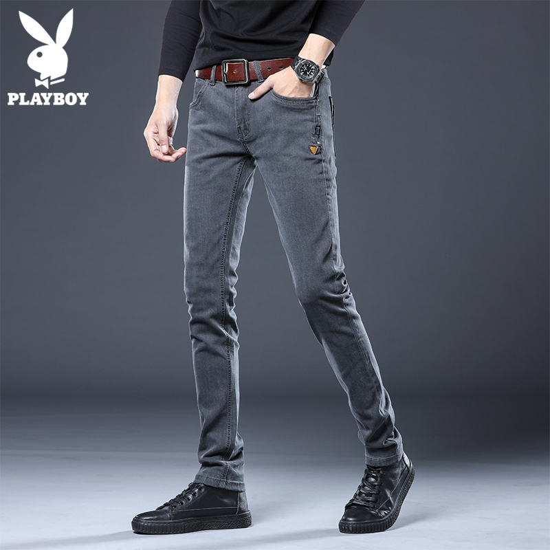 Playboy Jeans Men's Spring Fall New Youth Tide Card Casual Elastic Body Small Feet Long Pants Man