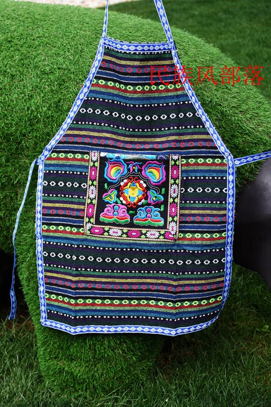 Yunnan ethnic style embroidery apron embroidered cotton and linen restaurant personalized work clothes apron waiter apron