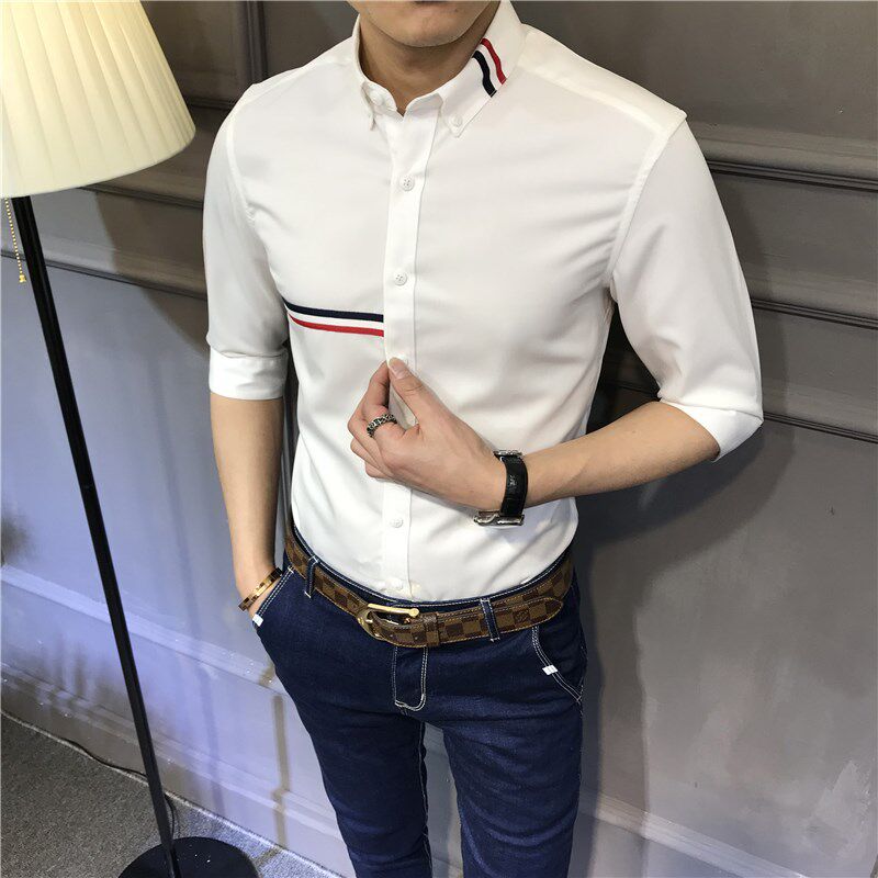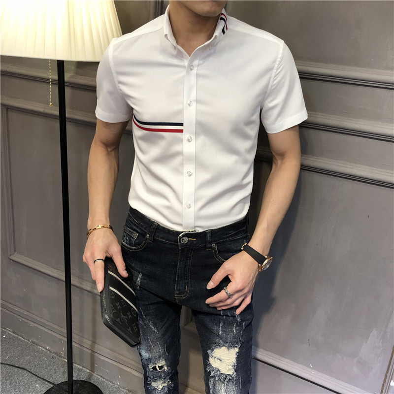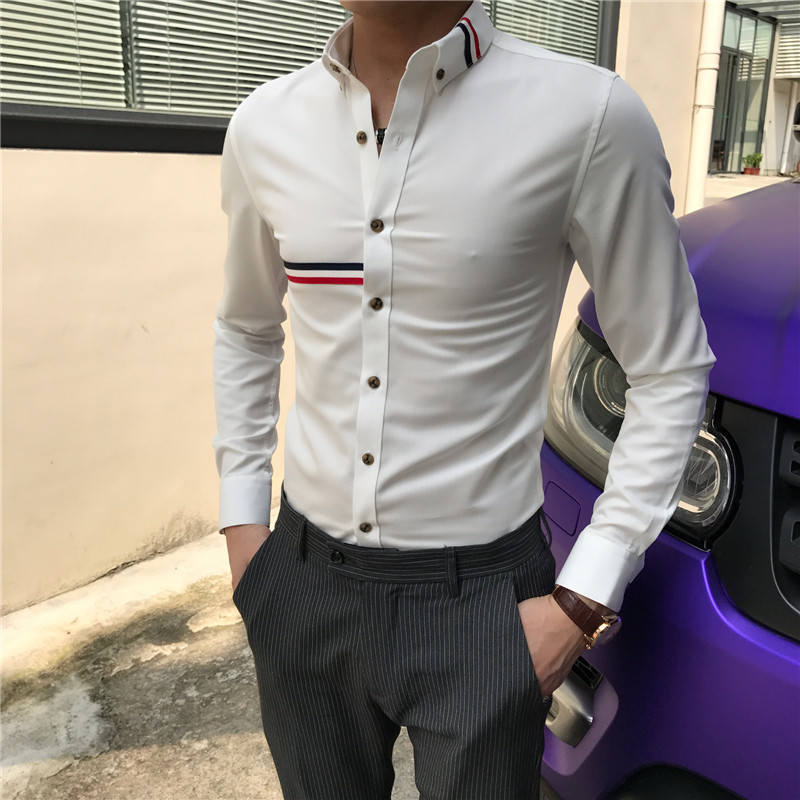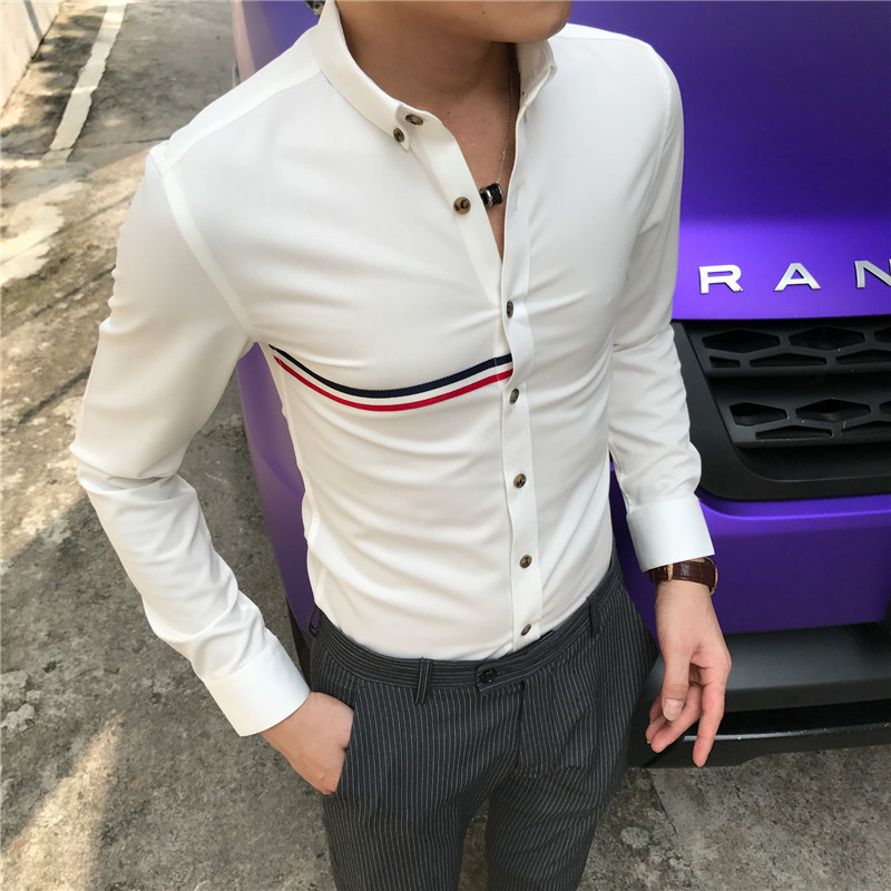 High-end hair stylist white long sleeve shirt for men's Korean version striped free of ironing trend and high sense light lavish shirt