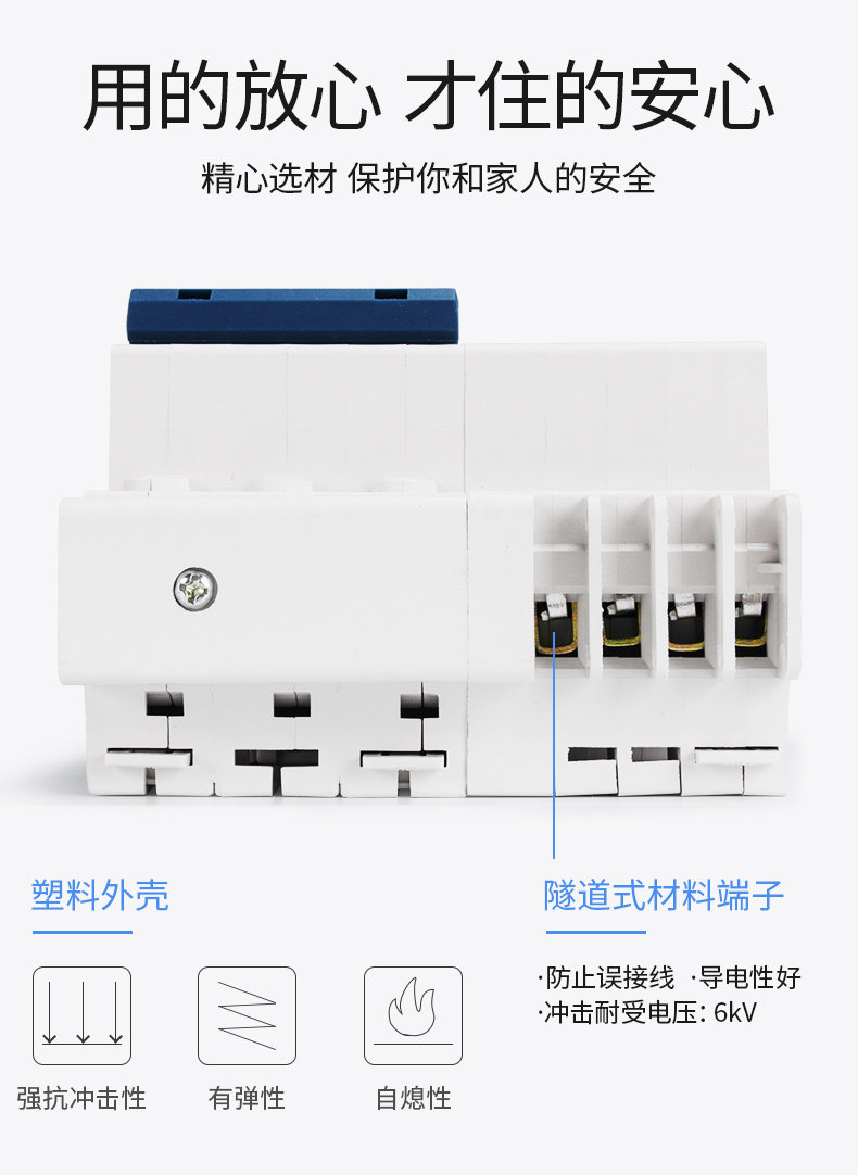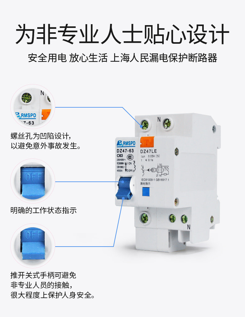 Shanghai people leakage switch DZ47LE2P63A Air switch with leakage protector Air circuit breaker C45