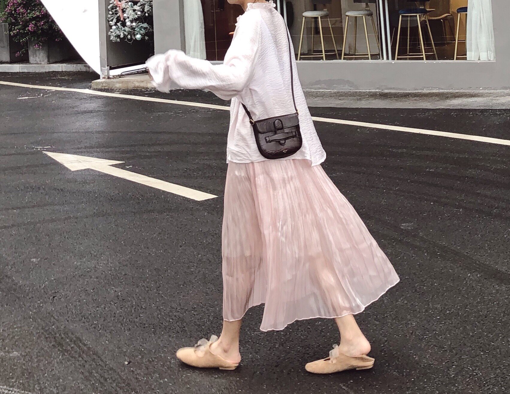 Via Vela sparkling tricolored skirt a word high waist medium long pink grey pleaty fairy dress