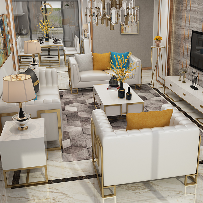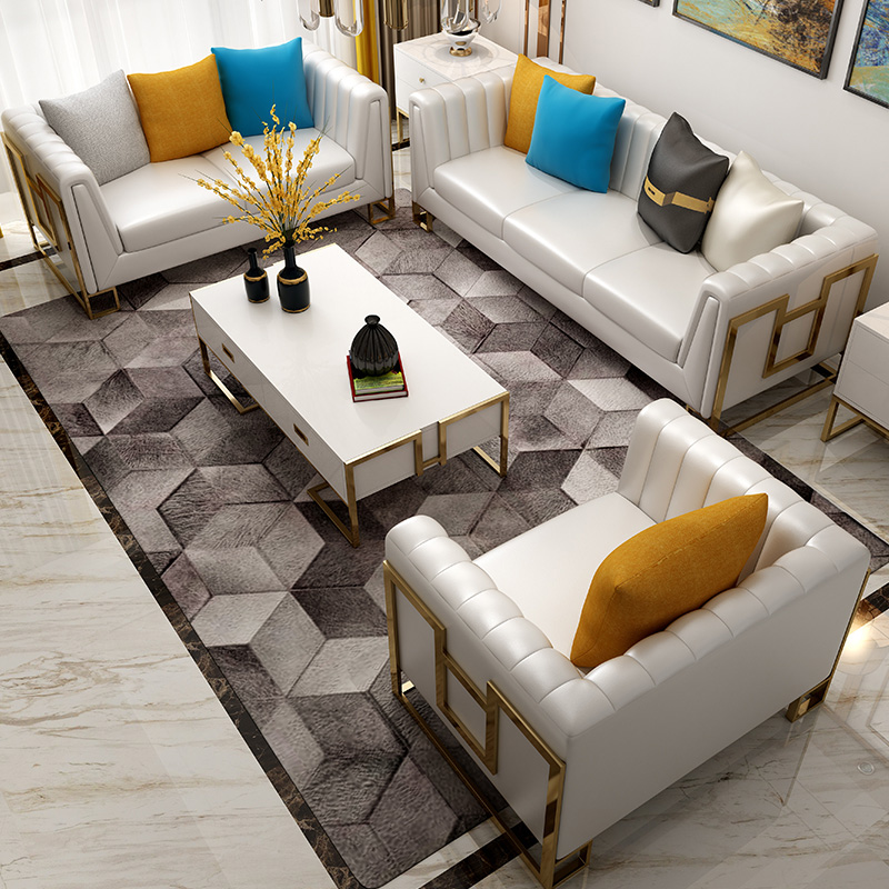 Post-modern Hong Kong-style fabric sofa living room combination light luxury stainless steel leather modern minimalist small apartment model room