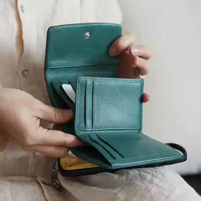 Bugu Forest women's true 2-fold short small wallet sheepskin multi-card soft ticket holder coin change bag c224