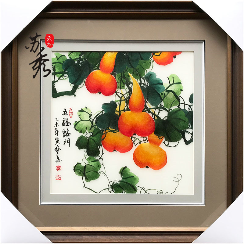 Suzhou embroidery finished product hanging painting pure handmade living room decoration gourd dining hall Mulberry Silk Corridor Stairs Wufu Linmen