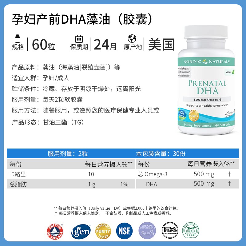 Norwegian small fish pregnant women Prenatal Special Seaweed Oil Vegetal type dha Pregnancy Breastfeeding mother and baby of the same supplement 60 grains-Taobao