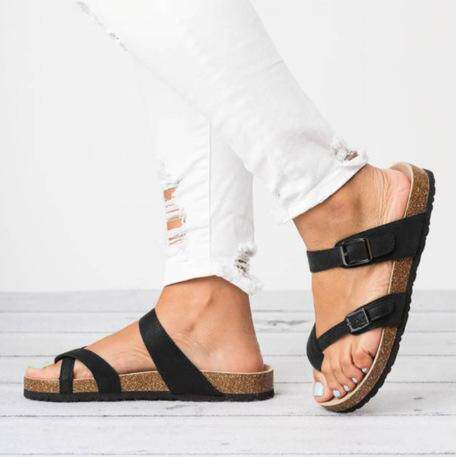 2020 Explosion summer sandals female big toe flat thick