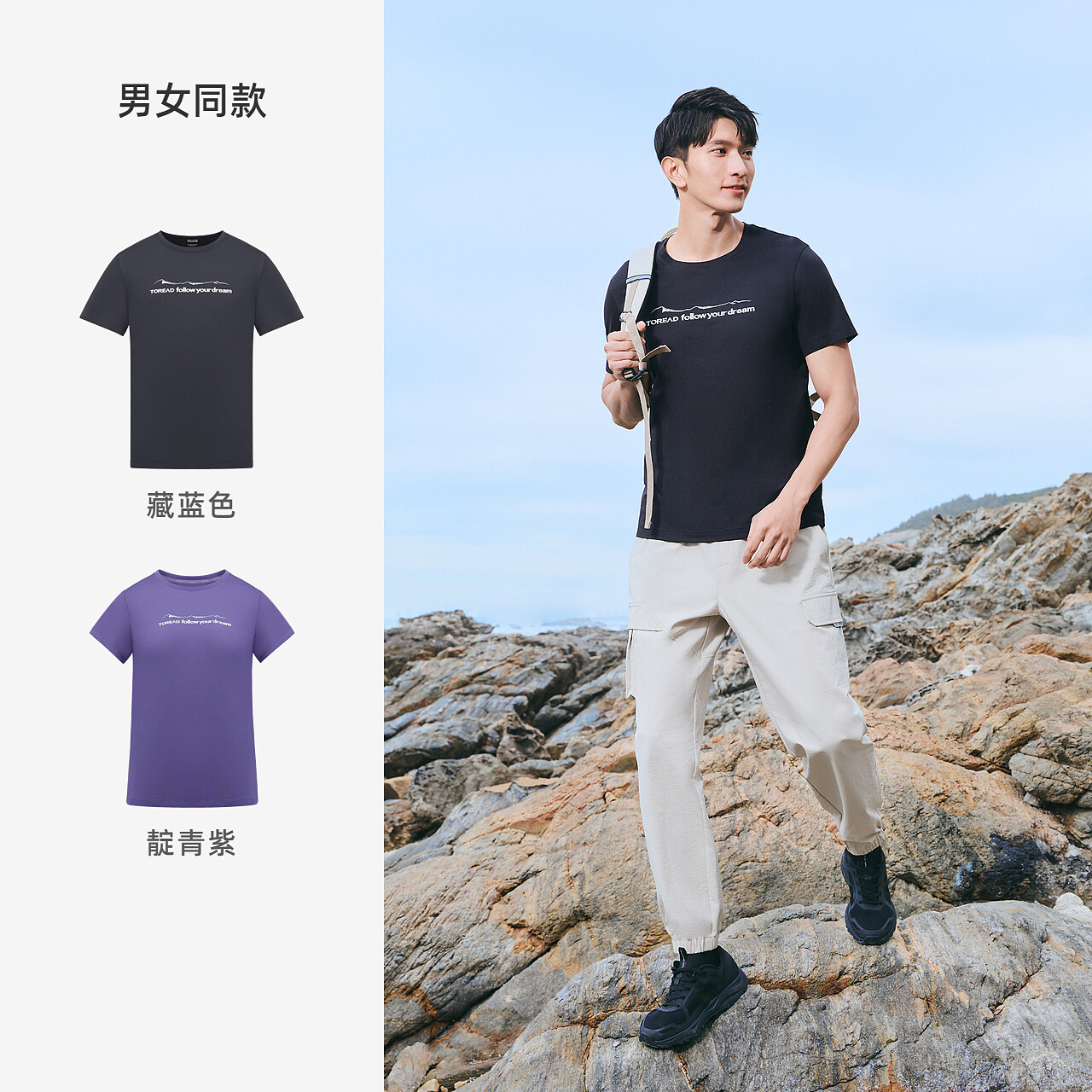 Pathfinder quick-drying T-shirt men and women spring and summer new outdoor couple models breathable elastic round neck short-sleeved TAJJ81750
