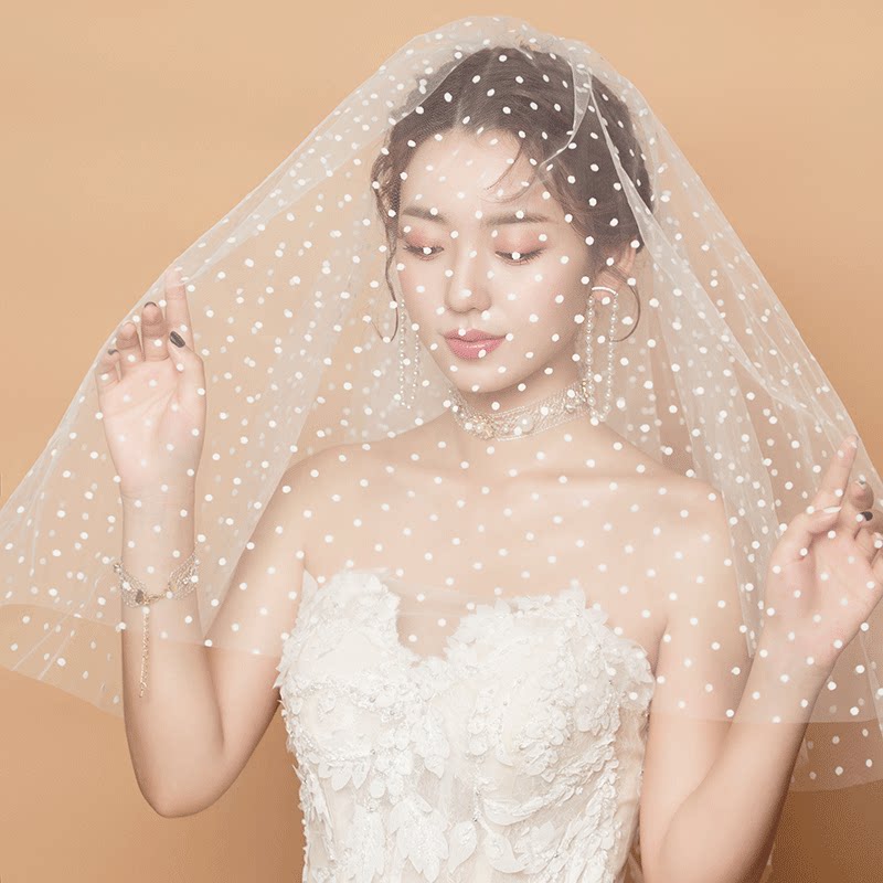 Cute Bride Super Fairy Romantic Wave Dot Bride Wedding Brigade Pat for long version of photo Double white head yarn New product