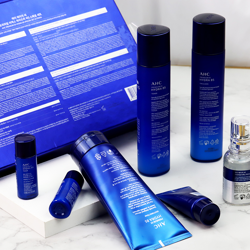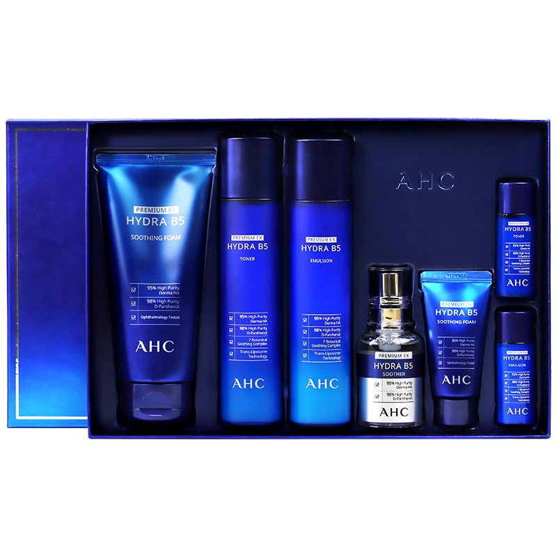 Korea AHC Hyaluronic Acid Water Milk Set B5 Essence Cleansing Moisturizing Moisturizing Brightening Women's Men's Skin Care 6-Piece Set