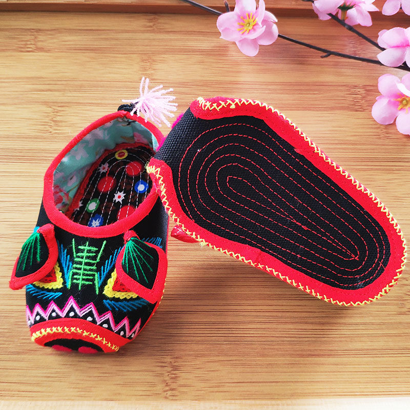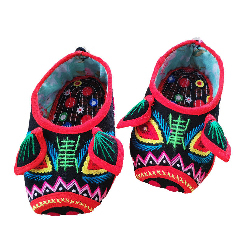 Pig head shoes baby cloth shoes spring and autumn single shoes men and women baby tiger head shoes pure handmade traditional shoes black