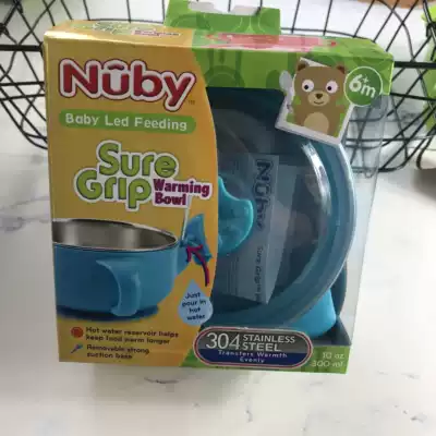 Nuby Nuby baby suck bowl non-staple food bowl anti-drop stainless steel water filling bowl children's tableware with handle